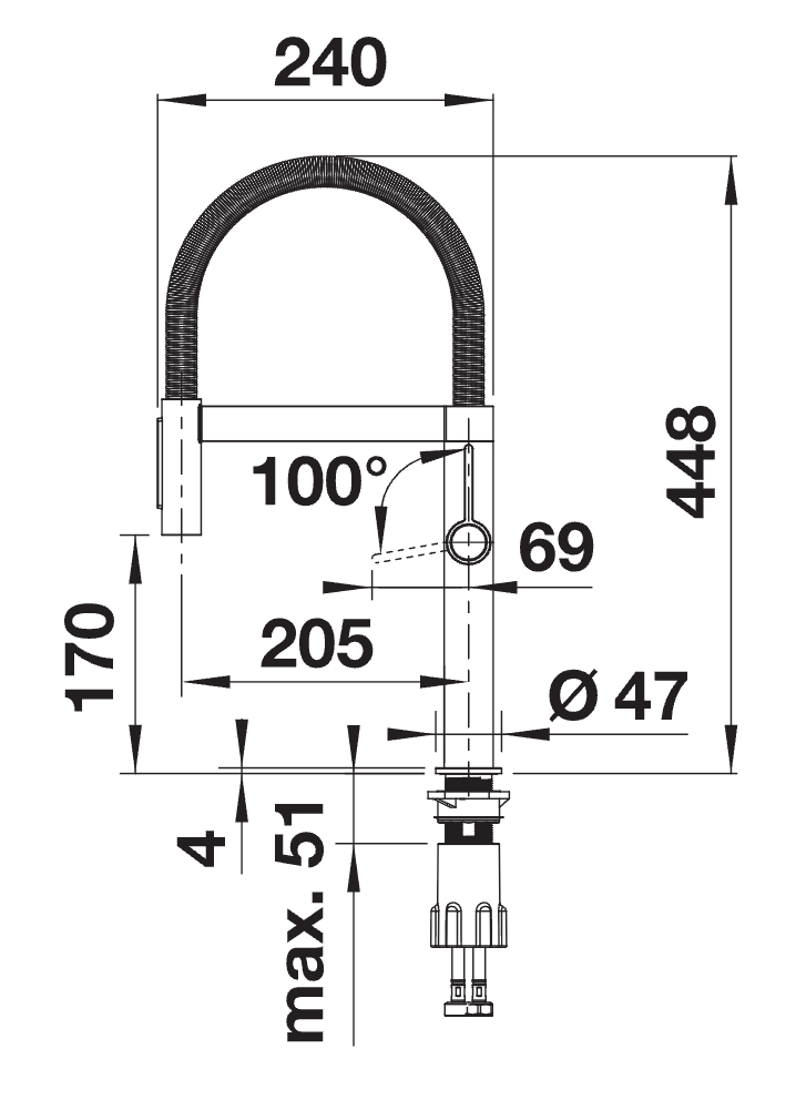 Bec orientable à 180° pour un plus grand rayon d‘action