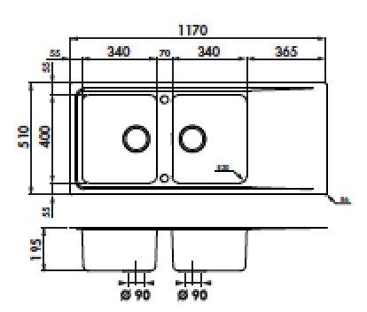 Dimensions (mm) : 1170 L x 510 l x 195 P mm