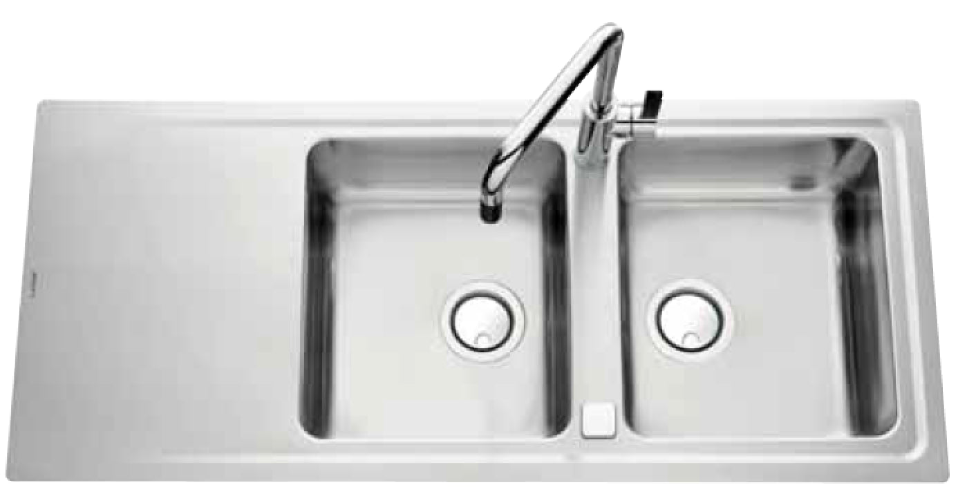 Un nouveau modèle d'évier avec 2 bacs et égouttoir en Luisinox au design très moderne.